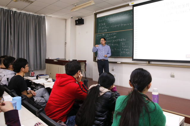 課堂教學是培養(yǎng)人才的主渠道,上好“枯燥抽象”的數學課,激發(fā)數學興趣,成為數學老師們“挖空心思、絞盡腦汁”的首要任務。 “巧引妙借厚底蘊,文有詩詞言自華”, 曹鵬的數學課廣受學生歡迎。“考前翻翻‘CP(曹鵬)語錄合集’,能起到考試‘護身符’的作用。”數學學院2014級本科畢業(yè)生曹越琦對自己的這位數學老師可謂崇拜不已,“現在一提到傅里葉級數和傅里葉變換理論,我立馬就聯想到曹老師用《琵琶行》中的‘大弦嘈嘈如急雨,小弦切切如私語’來形容不同的‘頻率’,真是中了曹老師的‘毒’了!”除了激發(fā)興趣,曹鵬的數學課有著更大的“野心”:“我希望學生在我的課上,不僅學到數學知識,也能提升人文素養(yǎng)。”