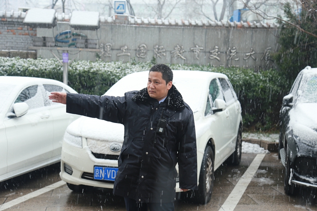 工作兩年多來,郭斌理論結合實踐,不斷學習安保業務技能,在國家和學校諸多重要活動中承擔安保工作,在全國“兩會”、“一帶一路”國際合作高峰論壇、慶祝新中國成立70周年等重大活動期間,他堅守崗位、盡職盡責,為學校的安全穩定保駕護航。