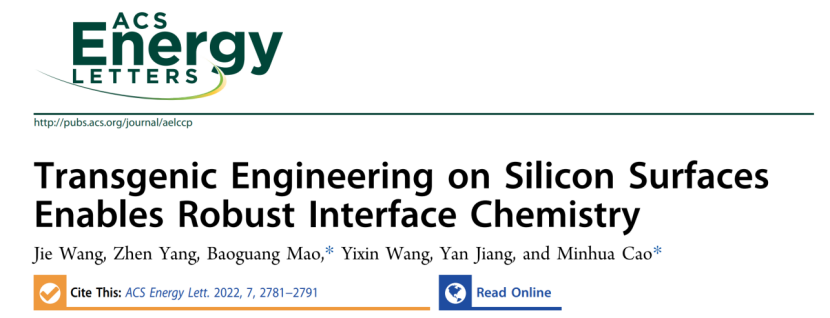 近日,北京理工大學化學與化工學院曹敏花教授團隊在鋰離子電池硅負極研究領域取得重要進展,相關研究成果以“Transgenic Engineering on Silicon Surfaces Enables Robust Interface Chemistry”為題,在《ACS Energy Letters》期刊上在線發表(DOI: 10.1021/acsenergylett.2c01202)。