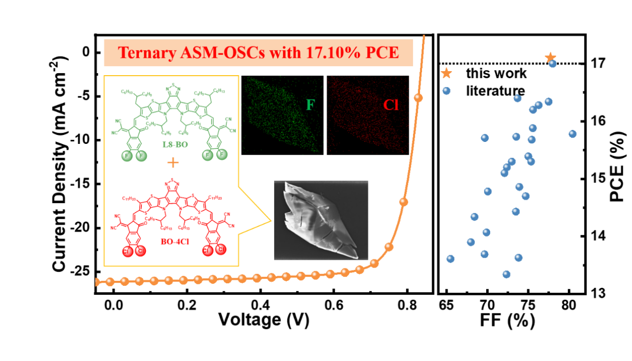 開發(fā)和利用高效清潔能源是國家能源戰(zhàn)略中亟需解決的重大科學(xué)問題,也是我國實(shí)現(xiàn)“雙碳”目標(biāo)的重要舉措。有機(jī)太陽能電池(OSCs)是一種有潛力的綠色光電轉(zhuǎn)換技術(shù),它的獨(dú)特優(yōu)勢為其商業(yè)化應(yīng)用提供了廣闊空間。由于小分子材料具有明確的分子結(jié)構(gòu)、批次間穩(wěn)定性好、易制備和純化等優(yōu)勢,全小分子OSCs(ASM-OSCs)具有商業(yè)化生產(chǎn)的巨大潛力。但ASM-OSCs有源層形貌難以調(diào)控,電壓損失較高,其效率仍落后于其他類型OSCs。