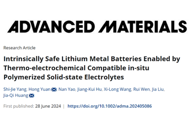 近日,北京理工大學前沿交叉科學研究院黃佳琦教授課題組在高安全固態金屬鋰...