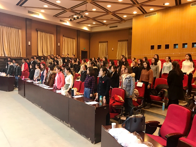 2017年12月9日早8點,良鄉校區合唱隊成員信心滿滿的從良鄉出發,與中關村校區的合唱成員于模擬法庭集合,開始最后的征途。9:00,合唱隊在模擬法庭進行了聲音調整性練習;12:00,隊員們進行了化妝及服裝準備;16:30,合唱隊按計劃前往體育館彩排;18:00,在進行了最后一次練習后,所有隊員氣勢高昂的進入體育館指定地點候場準備。上場前,張愛秀來到隊伍中,為同學們加油助威。