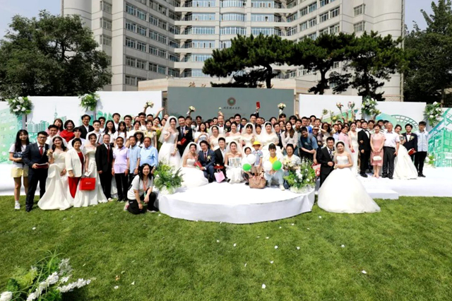 6月18日上午,由校團委主辦、校研究生會承辦的2023年北京理工大學研究生畢業集體婚禮在中關村校區中心花園草坪舉行。